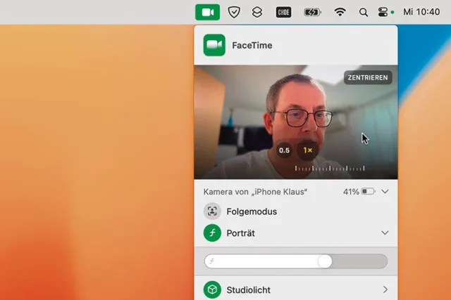 So getan, lassen sich über ein neues Menü auch die Effekte des iPhones auswählen, etwa der Porträt-Modus, um den Hintergrund in der Unschärfe verschwinden zu lassen, Bild 6. Die Möglichkeiten variieren mit dem iPhone: So funktioniert die Schreibtischansicht aus der Vogelperspektive nur mit iPhones, die eine Ultraweitwinkel-Kamera verbaut haben.