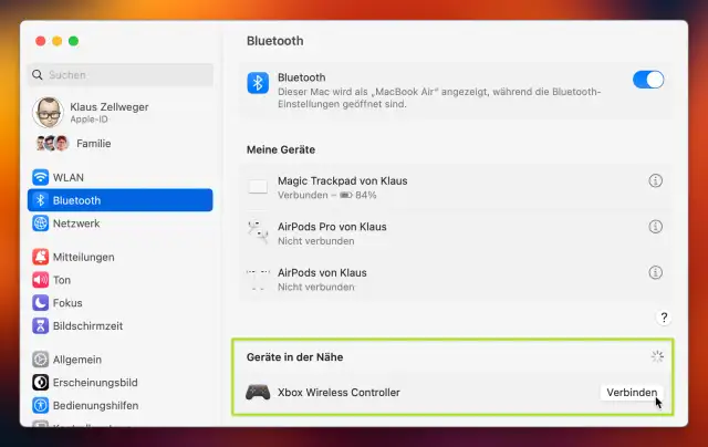 Um den Xbox-Controller mit einem Apple-Gerät zu koppeln, schalten Sie ihn über die Xbox-Taste ein; die Xbox-Taste blinkt langsam. Halten Sie die Pairing-Taste an der oberen Stirnseite etwa drei Sekunden lang gedrückt. Nun blinkt die Xbox-Taste schnell und der Controller lässt sich in den Bluetooth-Einstellungen des Macs auswählen. Um den Controller nach getaner Arbeit auszuschalten, halten Sie die grosse Xbox-Taste etwa sechs Sekunden lang gedrückt.