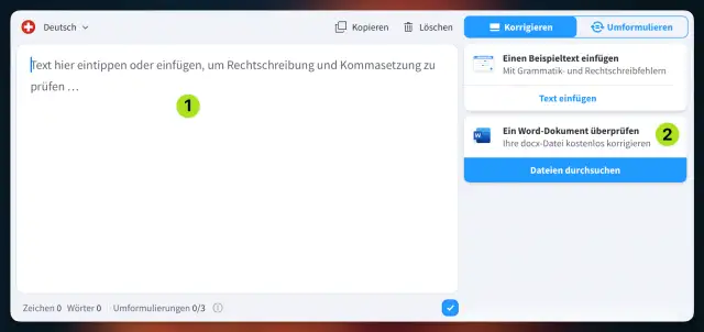 Zu den deutschsprachigen Hilfen zählt LanguageTool, das sich mit über dreissig Sprachen versteht – darunter auch Deutsch. Für die ganz Eiligen: Der Dienst lässt sich kostenlos und ohne Anmeldung unter languagetool.org nutzen. Setzen Sie einfach einen Text in das grosse Eingabefeld. (1) Mehr noch: Klicken Sie auf die Schaltfläche Ein Word-Dokument überprüfen, (2) um eine Word-Datei hochzuladen, mithilfe von LanguageTool zu korrigieren und in der verbesserten Form zu speichern. Auch diese Dienstleistung ist kostenlos; sie setzt allerdings eine Registrierung voraus. Dabei sollte noch erwähnt werden, dass die Korrektur auf den Servern des Dienstes durchgeführt wird, was den Text einsehbar macht.