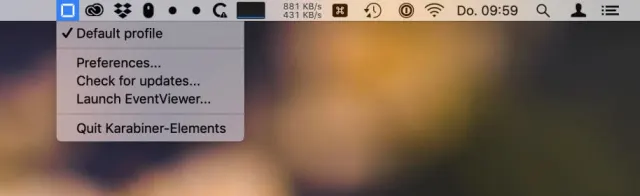 Das muss nicht so bleiben, wenn Sie die kostenlose Software «Karabiner Elements» (kurz: Karabiner) hinzuziehen, die Sie unter der Adresse https://pqrs.org/osx/karabiner herunterladen. Nach der Installation finden Sie im «Programme»-Ordner die Anwendungen «Karabiner-Elements» und «Karabiner-EventViewer». Starten Sie die Anwendung «Karabiner-Elements». In Zukunft können Sie die Einstellungen auch öffnen, wenn Sie in der Menüleiste das Karabiner-Symbol anklicken und im Einblendmenü den Befehl «Preferences» anwählen.