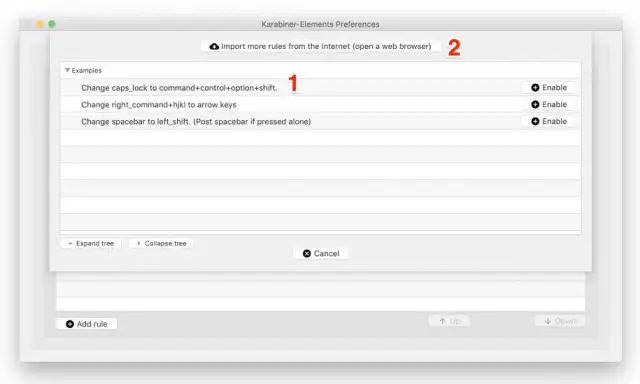 Wechseln Sie in den Bereich «Complex Modifications» (1) und klicken Sie auf die Schaltfläche «Add rule» (2):