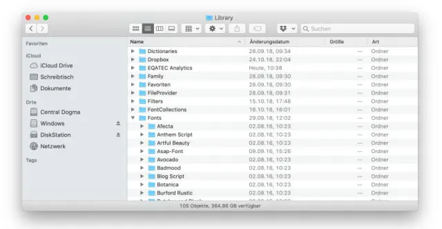 Quelle: Screenshot / zeDer Ordner enthält ausserdem Voreinstellungen und andere Elemente, die von Anwendungen automatisch installiert wurden. Solche Dinge werden oft in den Unterordnern «Application Support» und «Preferences» abgelegt. Kurzum: Sie sollten den «Library»-Ordner an einem verregneten Sonntag genauer unter die Lupe nehmen, um mehr über seinen Inhalt zu erfahren.