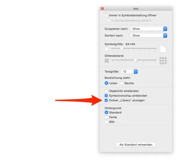 - Markieren Sie die Option «Ordner ‹Library› anzeigen»: