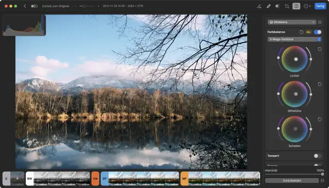 Einen anderen Nachlass gibt es, wenn Pixelmator auf dem Mac installiert ist: Dann offeriert Photomator die lebenslange Lizenz für 70 Franken statt für 100 Franken. Die Software ist komplett in Deutsch lokalisiert, die Online-Hilfe gibt es jedoch nur in Englisch.