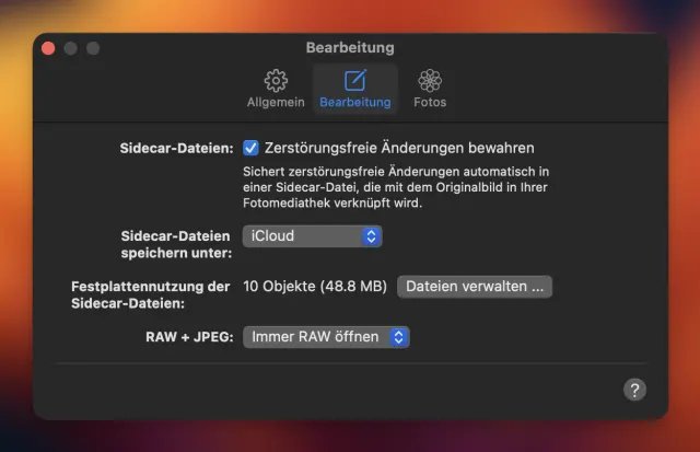 Die Sidecar-Dateien können sehr nützlich sein, aber sie passen nicht wirklich in den Workflow der ‹Fotos›-Mediathek