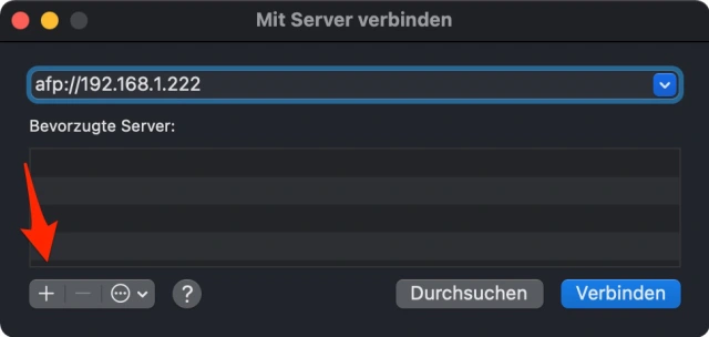 Quelle: PCtipp.chKlicken Sie ausserdem auf das Pluszeichen am unteren Ende des Dialogfeldes, um den NAS in die Liste der bevorzugten Server aufzunehmen, damit Sie ihn nach einem Neustart schneller aktivieren können.