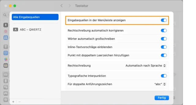 Quelle: PCtipp.chMarkieren Sie die oberste Einstellung Eingabequellen in der Menüleiste anzeigen.