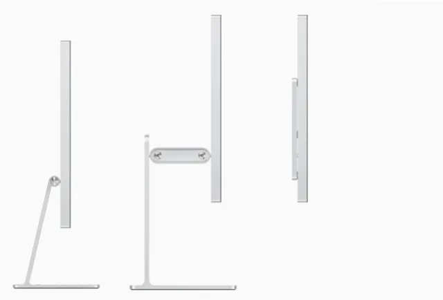 Von links nach rechts: neigbarer Standfuss, höhenverstellbarer Standfuss und das reine Studio Display mit VESA-Halterung