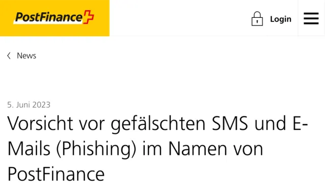Bild 3: Die PostFinance hat im Jahr 2023 vor Fake-E-Mails in ihrem Namen gewarnt