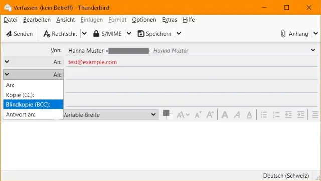 Quelle: PCtipp.chIn Mozilla Thunderbird klappen Sie im Verfassen-Fenster den Feldnamen links der Eingabezeile auf. Hier haken Sie Blindkopie (BCC) an.