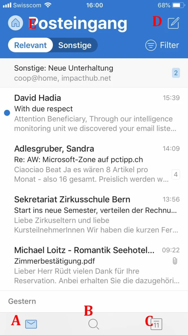 dass sie archiviert (bzw. gelöscht) wird. Tippen Sie eine Mail an, wird sie geöffnet.