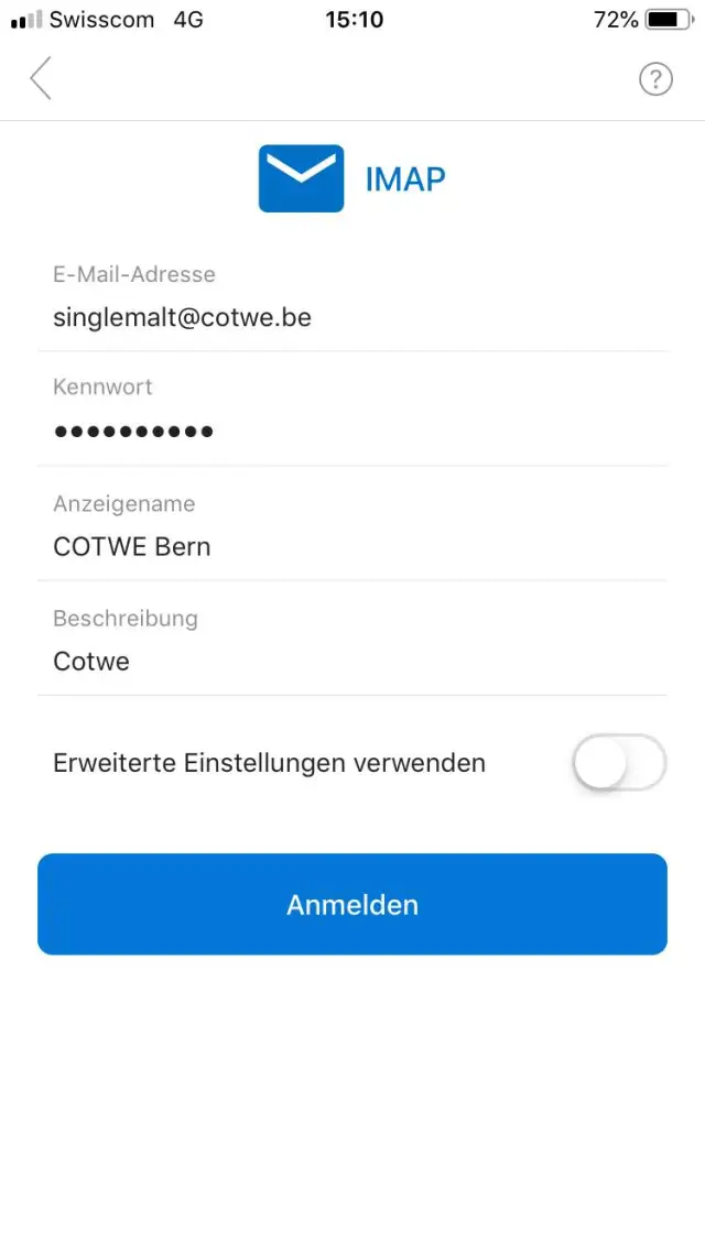 Quelle: PCtippIm ersten Schritt geben Sie die E-Mail-Adresse ein, die Sie mit Outlook abrufen möchten. Je nach Anbieter (Yahoo, Google etc.) oder Dienst (Exchange, iCloud) müssen Sie anschliessend nur noch das Passwort und allenfalls einen Servernamen angeben – und das Konto ist fertig eingerichtet. Wenn das nicht klappt, tippen Sie auf Konto manuell einrichten. Unter Erweitert sehen Sie die Option iMap. Geben Sie zuerst den Benutzernamen (in der Regel die Mailadresse) und das Kennwort an. Tippen Sie danach den Anzeigenamen und die Beschreibung des Kontos ein, Bild 7. Nun wählen Sie Erweiterte Einstellungen verwenden und tragen die Servernamen für eingehende und ausgehende Mails ein. Diese Angaben erhalten Sie von Ihrem Mailprovider. Fertig eingerichtete E-Mail-Konten erscheinen zuoberst im Menübereich.
