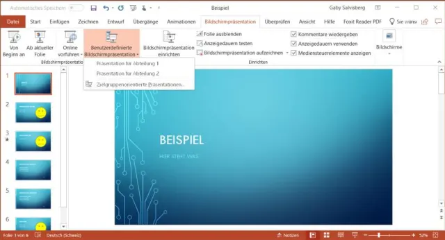 - Vielleicht präsentieren Sie in mehreren Abteilungen Ihrer Firma die jährlichen Umsatzzahlen. Dabei sollen sich aber je nach Abteilung ein paar Folien unterscheiden, weil sie mehr oder weniger Details enthalten.