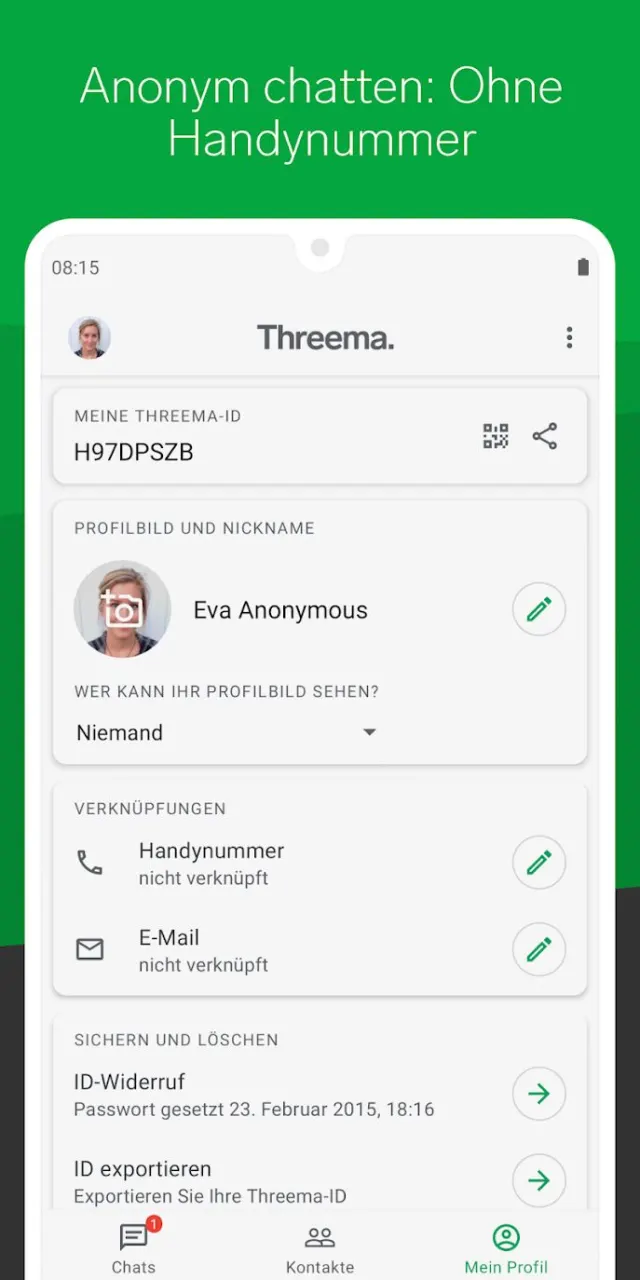 Speziell bei Threema: Die App benötigt keinerlei traditionelle Identifikation. Weder eine Telefonnummer noch eine E-Mail-Adresse sind nötig. Stattdessen erhält jeder Nutzer beim Erstellen des Kontos eine persönliche ID. Auf Wunsch können Sie auch Ihr Kontaktbuch freigeben, um Ihre Freunde auf Threema zu finden. Kontakte, die Sie nur per ID kennen, erhalten einen roten Punkt, da deren Identität nicht ausreichend bestätigt werden kann. IDs, die Sie mit dem Kontaktbuch abgleichen, erhalten zwei gelbe Punkte. Die perfekten drei grünen Punkte gibt es hingegen nur, wenn Sie den Kontakt persönlich treffen und dessen QR-Code in der App scannen.