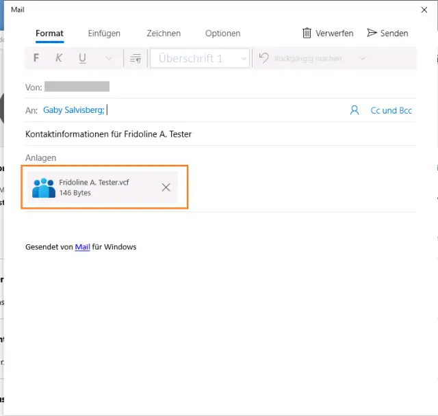 Jeden verflixten Kontakt müssen Sie einzeln teilen, um an die .vcf-Datei zu kommen – und diese speichern und den Mail-Entwurf verwerfen