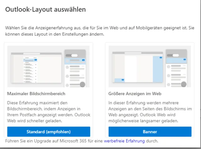 Im Anschluss bestimmen Sie das Erscheinungsbild (Layout) von Outlook. Wir empfehlen, hier die Standardansicht zu verwenden, Bild 10.