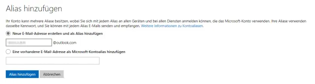 Bild 11: Nutzen Sie ein einprägsames Alias für Ihre Outlook-Mailadresse