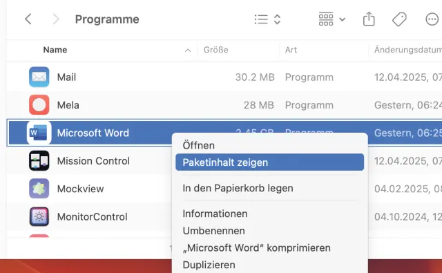 Nicht optimal, aber auch möglich: Verwenden Sie weiterhin die Microsoft-Schriften, die zu Office 365 gehören. Diese sind unter anderem in Word versteckt, das kostenlos im Mac App Store unter go.pctipp.ch/3442 geladen wird. Ohne Word auch nur zu starten, klicken Sie mit der rechten Maustaste auf das Programmsymbol und wählen im Kontextmenü den Befehl Paketinhalt zeigen, Bild 3. Jetzt öffnet sich die Struktur. Die Fonts befinden sich im Verzeichnis Contents/Resources/DFonts.