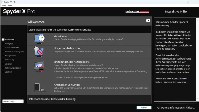 Der Vorgang ist glücklicherweise einfach. Installieren Sie zunächst die SpyderX-Software mit dem Link, den Sie in der Hardware-Box erhalten haben. Folgen Sie den Anweisungen Schritt für Schritt, Bild 5.