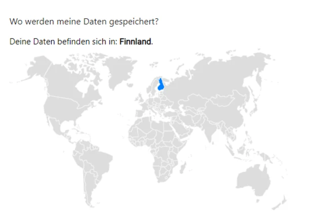 Transparenz: Man muss weder lange Suchen noch rätseln: Die Daten werden in Finnland gespeichert