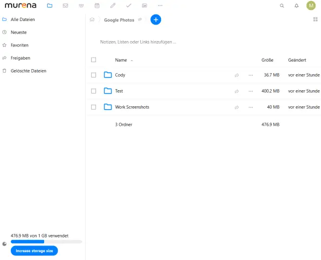 Quelle: Screenshot/PCtipp.chHinweis 1: Es ist derzeit leider nicht möglich, nur gewisse Alben/Ordner anzuhaken und diese zu importieren. Den meisten dürfte 1 GB Speicher nicht reichen, um Google Fotos zu importieren. In einem solchen Fall können Sie ein Backup der Bilder auf eine externe Festplatte erstellen und einen Ordner unter Dateien in die Murena-Cloud hochladen.