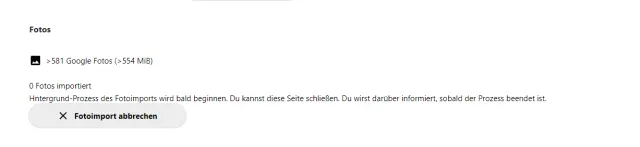 Der Import von Google-Fotos-Bildern kann sehr lange dauern - das heisst: mehrere Stunden