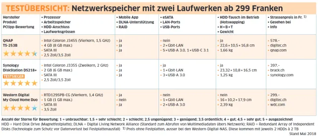Fazit: Der QNAP TS-253 ist ein ausgezeichneter Heim-NAS für fortgeschrittene Nutzer. Ganz einsteigerfreundlich ist das 578 Franken teure Gerät nicht, bietet aber dafür eine Vielzahl an Profi-Funktionen und Extras für Geübte. Der Preis ist für die gebotene Leistung absolut in Ordnung.