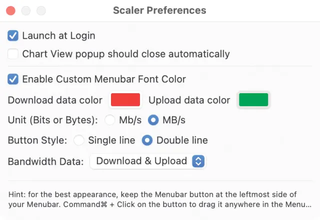 Quelle: PCtipp.chÜber die drei Punkte rechts oben in diesem Fenster gelangen Sie zu den Preferences (Einstellungen), Bild 2. Sie sind eher spartanisch gehalten – doch das Wichtigste ist da. So lassen sich unterschiedliche Farben für den Up- und Download festlegen oder die Einheiten umschalten.