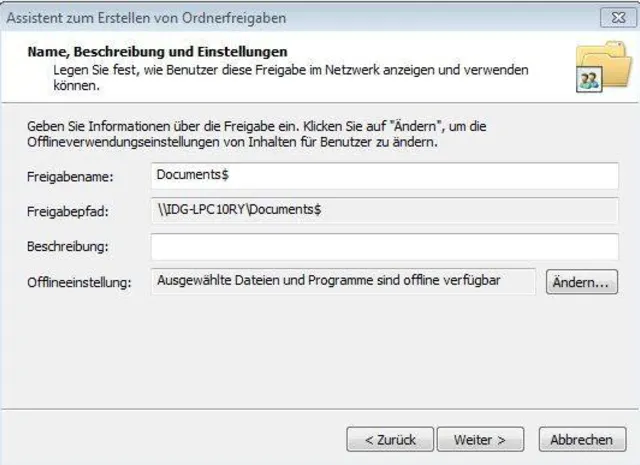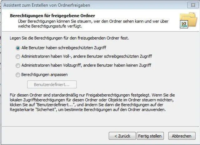 - Wählen Sie mittels des Assistenten den Ordner aus, den Sie freigeben