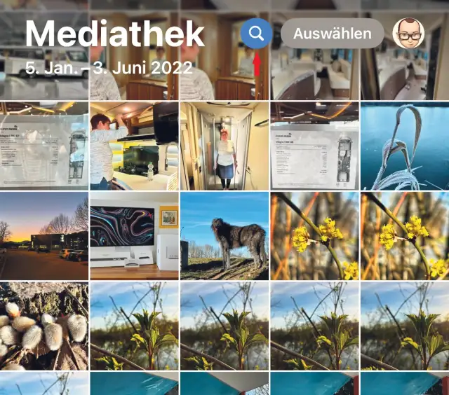 Überhaupt wurde die Suche in der letzten Zeit massiv verbessert, vor allem die Personenerkennung. Noch besser wird es hoffentlich, wenn Apple Intelligence wie geplant im April bei uns erscheinen wird und die Suche mit künstlicher Intelligenz anreichert, die mehr vom Inhalt und Kontext versteht. Die Suche in der Fotos-App wird über die blaue Lupe auf dem obersten Bildschirm aufgerufen, Bild 7.