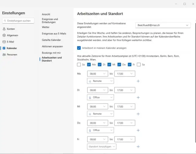 Bild 11: Hinterlegen Sie für Ihre Arbeitskollegen Ihre Arbeitszeiten und -Orte direkt in Outlook