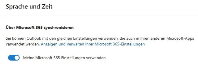 Im Menü Sprache und Zeit unter Allgemein kann Outlook auf die Einstellungen zurückgreifen, die auch für alle anderen Microsoft-Apps gelten. Stellen Sie dazu sicher, dass der Schalter bei Meine Microsoft 365 Einstellungen verwenden aktiviert ist, Bild 9.