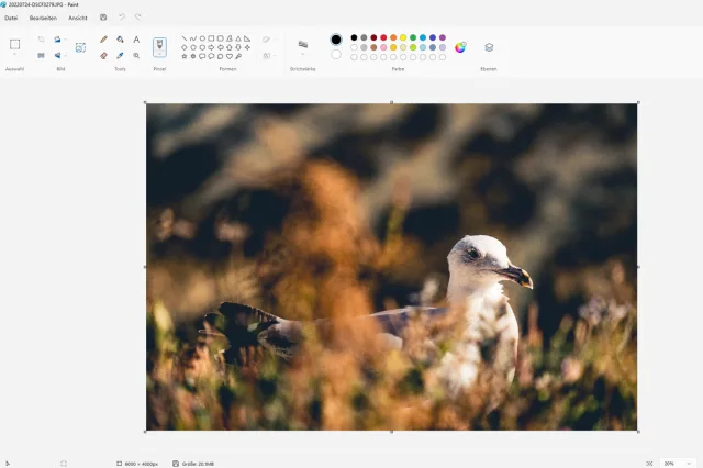 Eine Photoshop-Konkurrenz darf man nicht erwarten. Sogar die Entwickler von Bildbearbeitern wie Paint.NET müssen bisher nicht gross ins Schwitzen kommen, ob der neuen Paint-Features – die KI mal ausgenommen (lesen Sie dazu auch unsere Box auf der letzten Seite/Teil 3 zu den Paint-Alternativen), Bild 3.