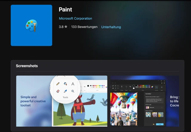 Bild 2: Microsofts Paint gibt es mittlerweile über den Microsoft Store