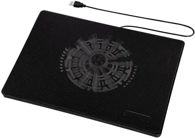 Ein Nachteil von Notebooks gegenüber Desktop-Rechnern ist die Kühlung – denn allein schon wegen der beengenden Verhältnisse ist es nicht möglich, einen richtig effizienten Lüfter einzubauen. Die Folge: Die Leistung von Prozessor und Grafikkarte nimmt ab, das Gerät wird langsamer. Zudem sind viele Notebook-Lüfter verhältnismässig laut, was bei konzentriertem Arbeiten ablenkt. Hier helfen spezielle Notebook-Lüfter. Sie sorgen einerseits dafür, dass das Notebook nicht direkt auf dem Tisch, sondern leicht erhöht liegt, sodass Luft unter dem Gerät zirkulieren kann. Andererseits ist der eingebaute Kühler für den Abtransport der Wärme zuständig. In diese Kategorie gehört der Hama Slim Notebook Kühler/Ständer, der über die USB-Schnittstelle (oder natürlich noch besser über die Dockingstation) mit dem Notebook verbunden wird. Dieses Gerät gibt es ab rund 33 Franken (gesehen bei arp.ch), Bild 10.
