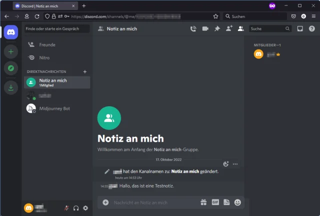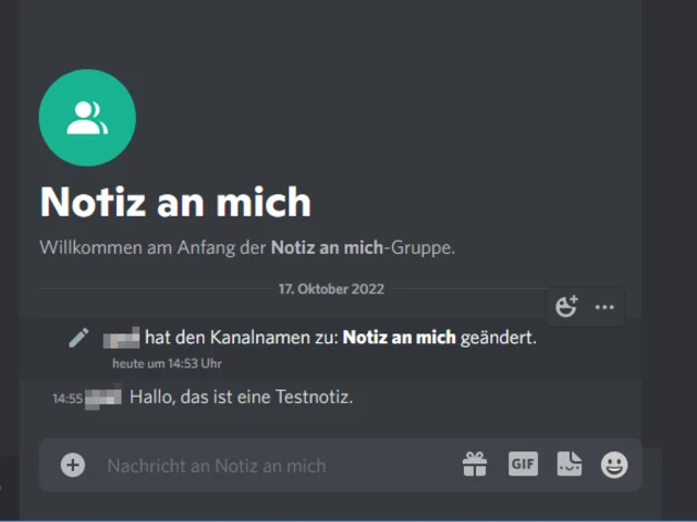 Einen «Notiz an mich»-Kanal in Discord erstellen