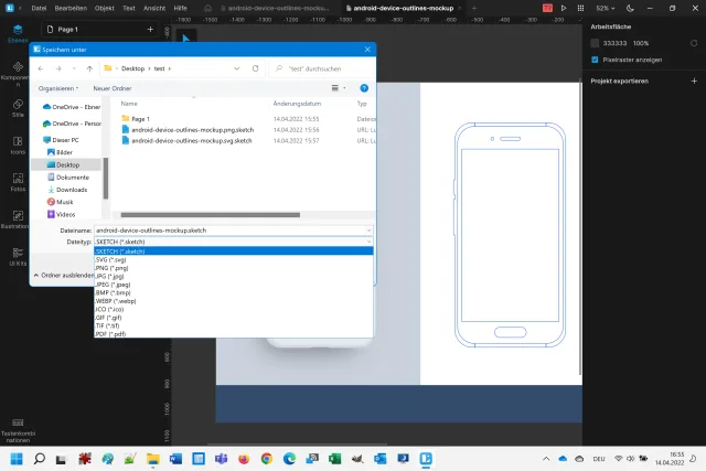 Das Speichern ist wieder als .sketch-Datei möglich oder in einem der bekannten Bitmap-Formate