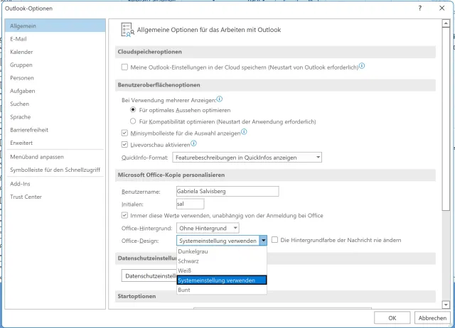 Nur so kann folgender Tipp wirken: Wählen Sie in einem Office-Programm (z. B. Outlook) Datei/Optionen/Allgemein. Bei Office-Design greifen Sie zu Systemeinstellung verwenden.