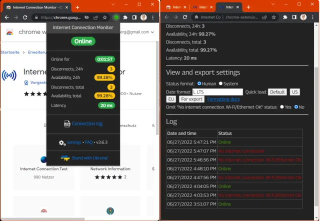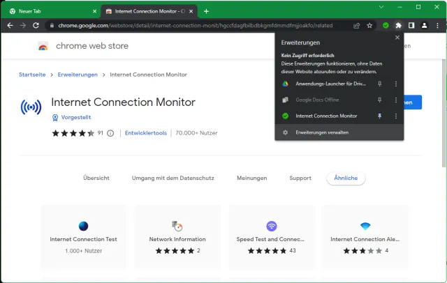 Chrome-Add-on: Internet Connection Monitor