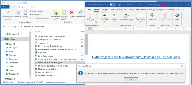Kein Netz – keine Datei; obwohl das File «Das ist meine Testdatei.docx» im Datei-Explorer angezeigt wird