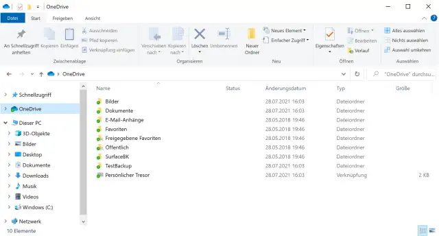So sieht der OneDrive-Ordner vorher aus
