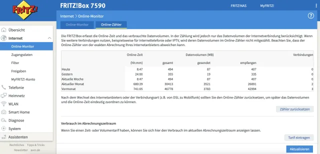 Onlinezeit und Datenvolumen meiner Fritz!Box kontrollieren – so gehts!