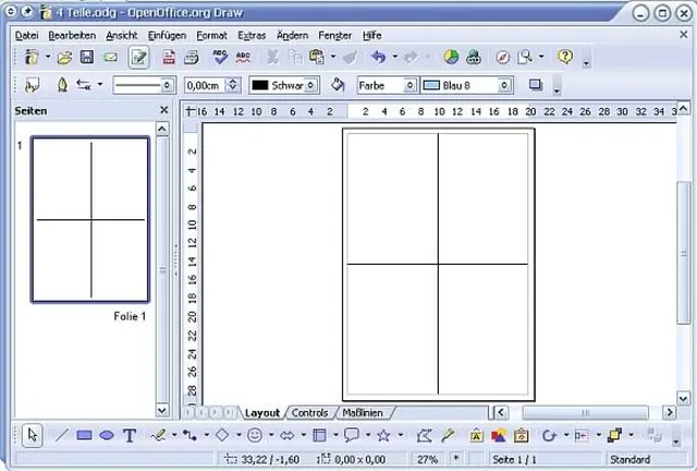 OpenOffice.org Draw: Blatt vierteilen für Text