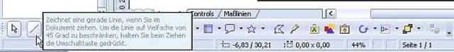 Im unteren Teil des Fensters finden Sie eine Symbolleiste mit den Funktionen, die Sie für das Anfertigen einer Zeichnung benötigen. Als zweites Symbol von links sehen Sie dort einen Schrägstrich.