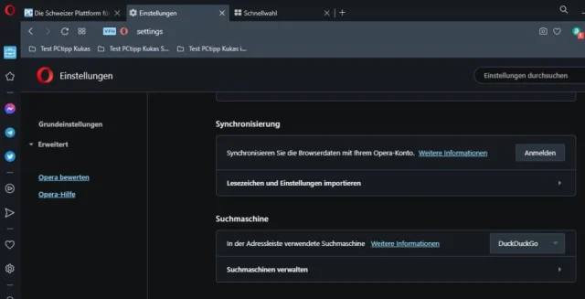 Quelle: Screenshot/PCtipp.ch- Am PC: Öffnen Sie den Opera-Browser und drücken Sie die Tasten Alt+P, um die Einstellungen zu öffnen.