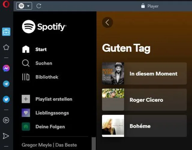 Beispiel des integrierten Musikplayers nach Anmeldung bei Spotify