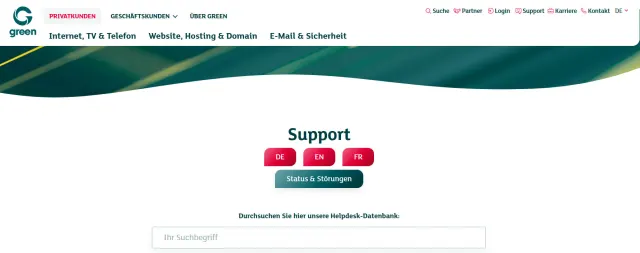 Die Supportseite vonGreen.chSEHR GUT: 4,5 Sterne