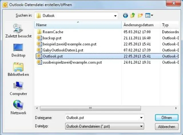 Outlook den Weg zur Outlook.pst weisen