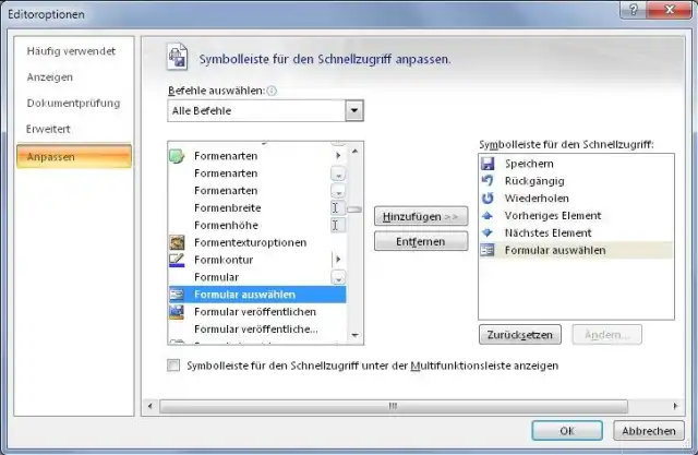 Icon «Formular auswählen» in Schnellzugriffsleiste hinzufügen