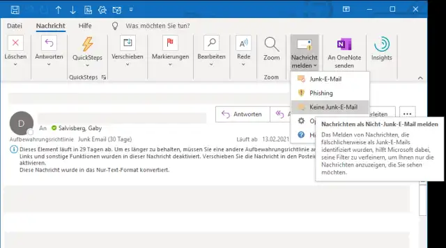 Etwas weiter geht hingegen ein kostenloses Add-In für Outlook. In der deutschen Version heisst es «Nachricht melden»; in der englischen «Report message».
